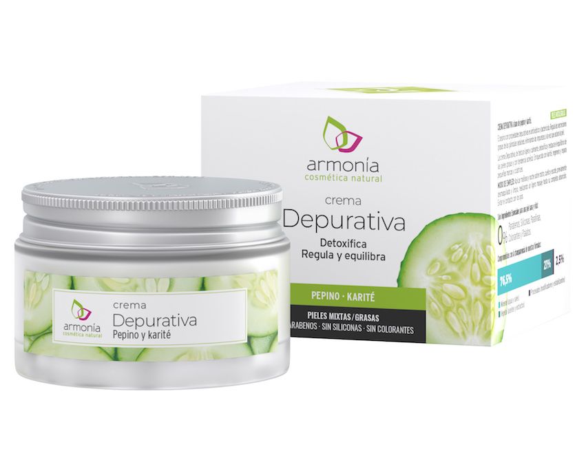 – Crema Depurativa con pepino y karité: una opción apta para veganos que presenta una tectura ligera y calmante que detoxifica y restaura el equilibrio de las pieles grasas y con tendencia al acné.
