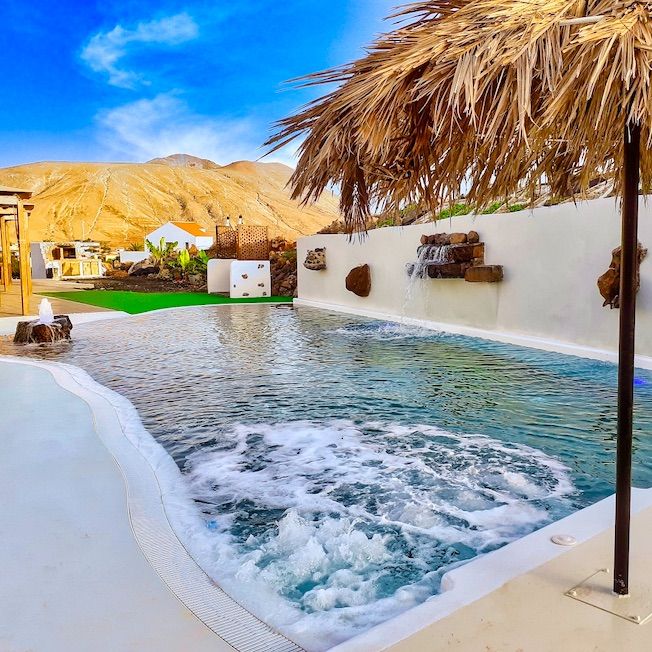 En el norte de Fuerteventura nos topamos con esta eco-villa localizada en un espacio natural de unos 4.000 metros cuadrados, en la que el turismo sostenible es el pilar de su filosofía. Compuesta por cinco suites con vistas al entorno y diversas zonas comunes, como unas piscina tipo playa, el hotel Eco Relax Suite Fuerteventura es un proyecto dedicado al bienestar, la relajación y la ecología. Para cumplir con su propósito, se abastecen con placas solares fotovoltaicas y emplean agua de lluvia para regar el jardín.